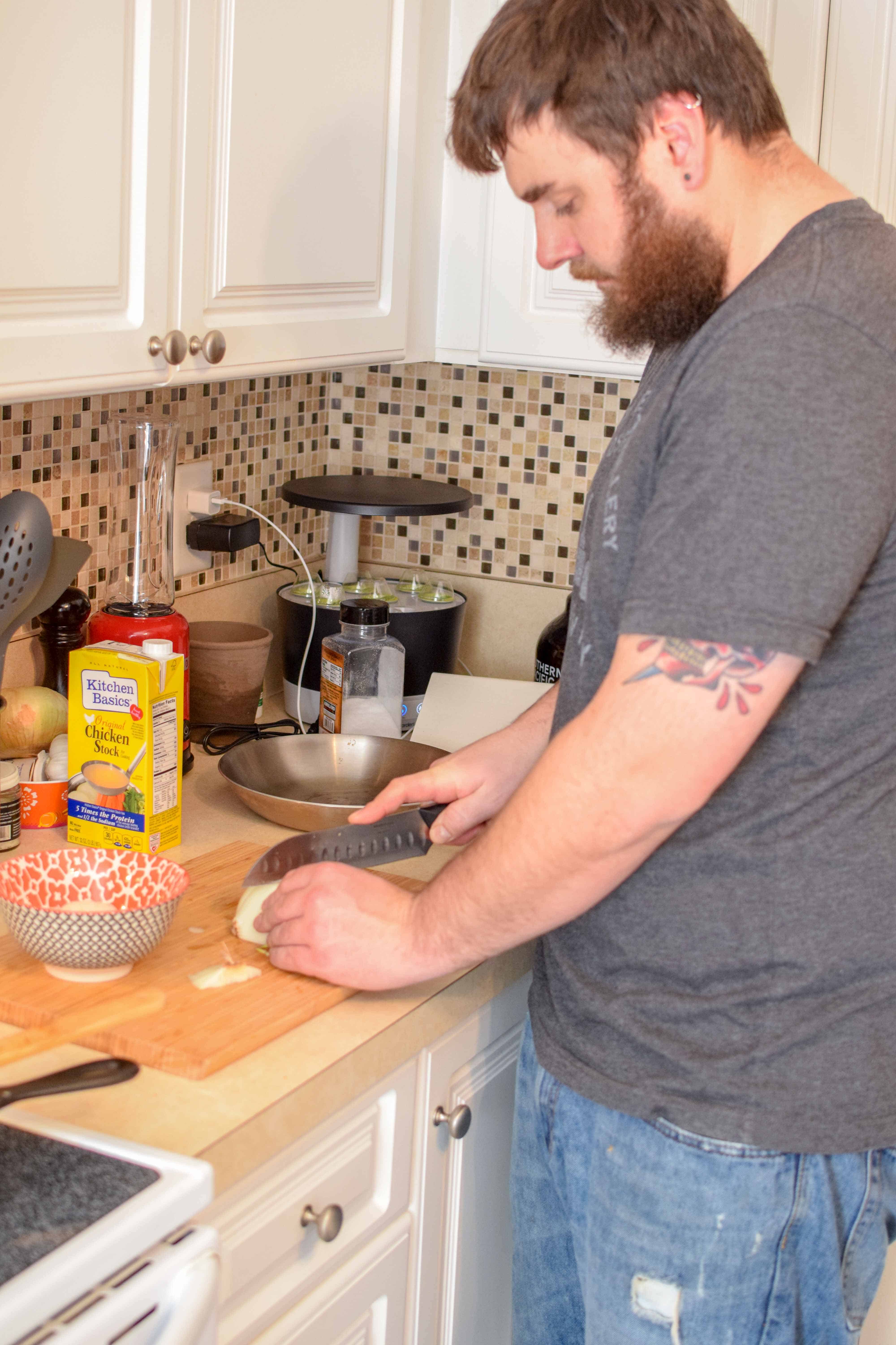 Alright, so this is where this recipe gets super fun. Instead of using butter to cook out onions and arborio rice, we added some duck fat for extra flavor. If you’ve never used duck fat, you should. It looks a little pricey ($7-$10 per container) but it lasts a while and you usually only need a little bit. We use it to fry potatoes all the time and it’s a game changer.