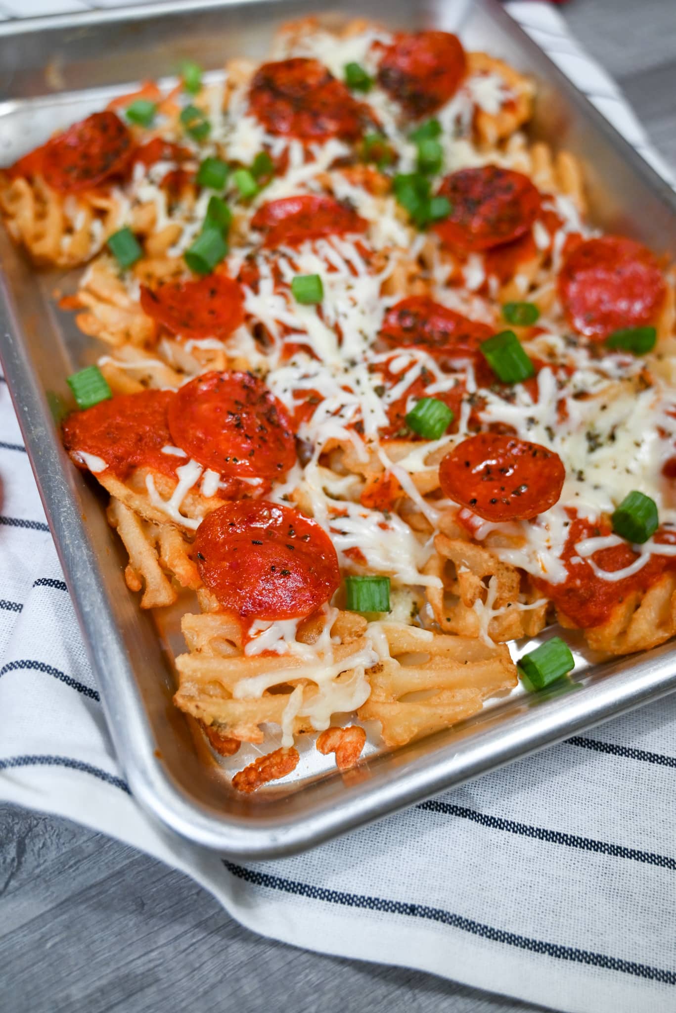 Crispy fries + marinara + cheese + toppings = happy kids.